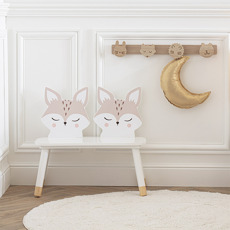 Ce banc pour enfant est sympa et adapté à eux. Avec la tête de renard endormi dessinée sur le dossier, il s'intègre parfaitement dans la chambre de votre enfant. Il peut s'asseoir tranquillement dessus et faire ses devoirs ou regarder un dessin animé.