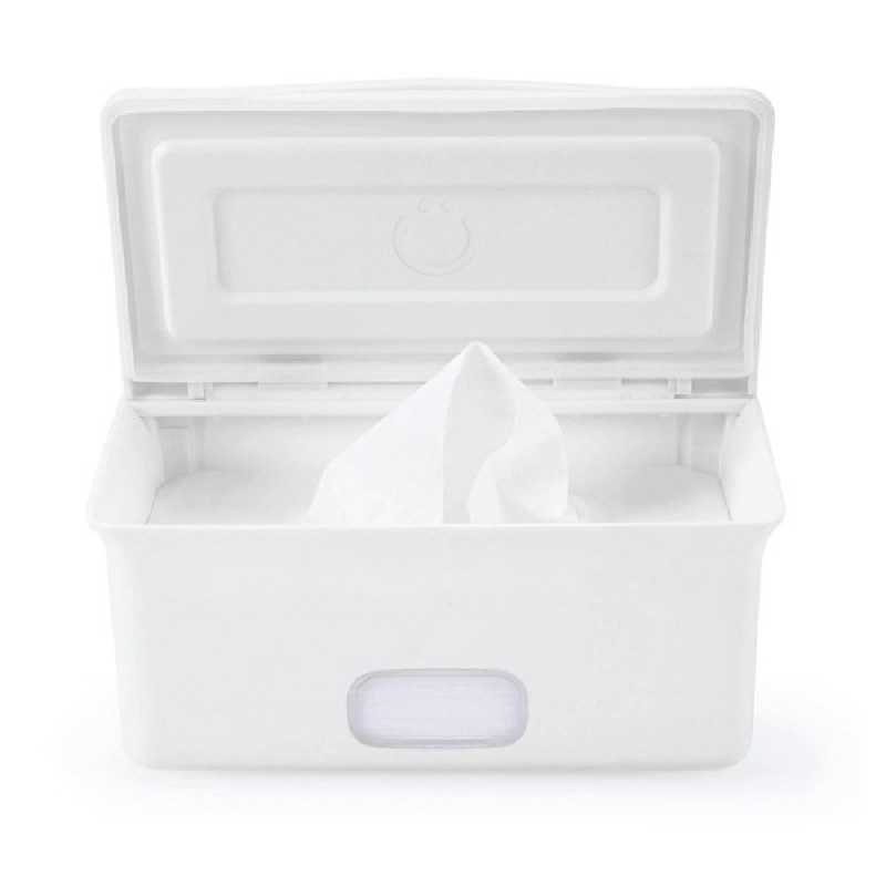 La boîte à lingettes de la marque Ubbi permet de contenir des paquets de lingettes standards et de ne sortir qu’une lingette à la fois.