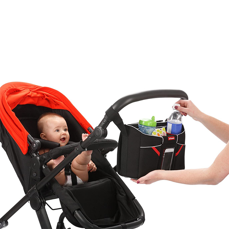 Il peut accueillir une tablette ou un smartphone dans des pochettes de protection compatibles avec les écrans tactiles, permettant une utilisation optimale en déplacement. Il permet également de garder des gadgets à portée de main afin de divertir les enfants lors de sorties au parc ou dans les magasins. Une tablette peut être glissée dans la poche arrière du sac, et lire une vidéo afin d'occuper bébé si la poussette est dos à la route. Pour les enfants plus âgés, il est possible de dézipper la pochette de la tablette afin de jouer dans la poussette. Des compartiments amovibles et personnalisables permettent de parfaitement organiser l'intérieur du sac ; il est même possible d'installer un compartiment pour une bouteille d'eau. Très pratique d'utilisation, il se décroche facilement de la poussette pour être porté en bandoulière. Il est compatible avec une majorité de smartphones et de tablettes, ainsi qu'avec toute poussette, qu'elle ait deux poignées, ou une barre latérale.
