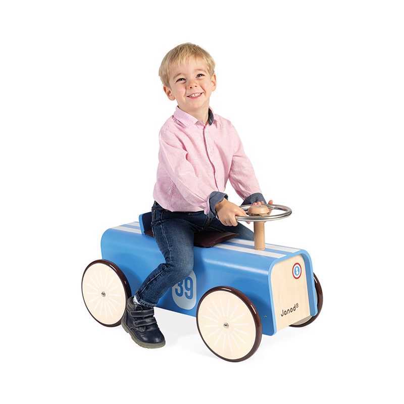 Une superbe voiture en bois avec volant en métal est un jouet unique en son genre. Fabriqué en bois, il est peint en bleu avec des rayures blanches, donnant une véritable sensation de voiture de course. Il est doté de roues directionnelles silencieuses qui permettent à votre petit pilote de course de diriger la voiture comme un pro. Cette voiture conviendra parfaitement à une chambre d'enfant… tout en enchanter les parents aussi!