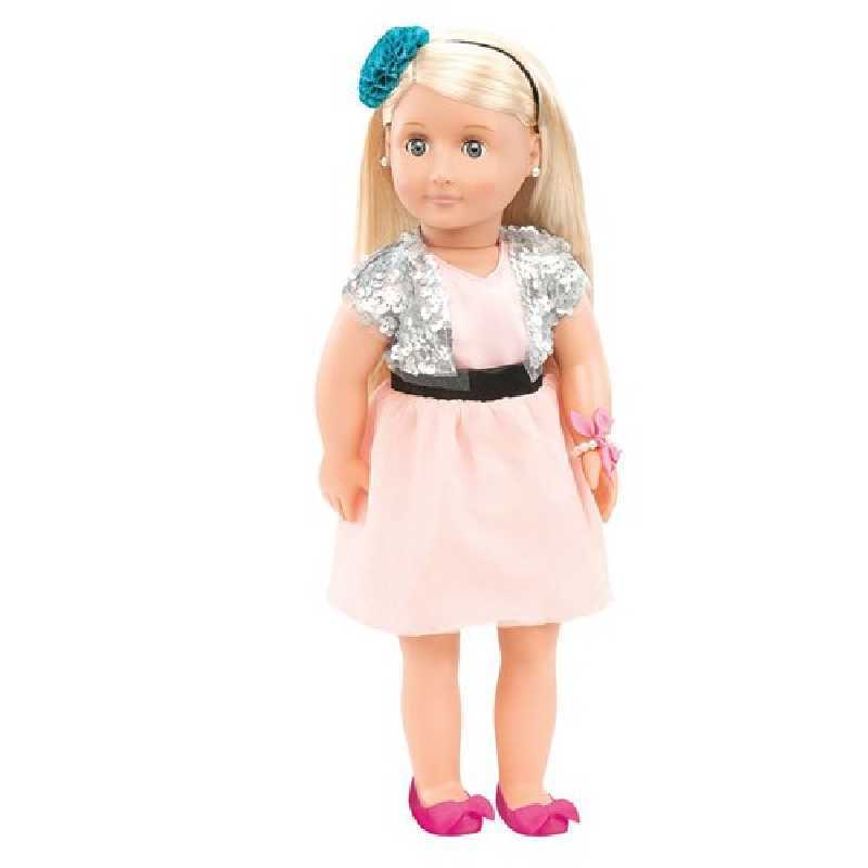 La poupée Anya d'Our Generation est une poupée de 46 cm , aux cheveux blonds, à la peau claire et aux yeux gris.