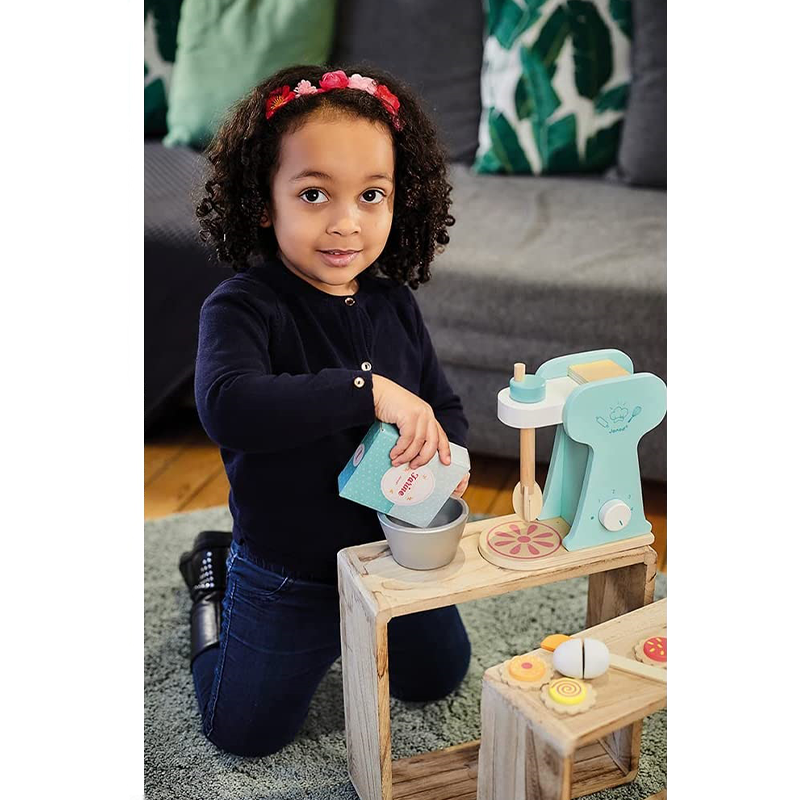 Faites entrer vos futurs chefs en cuisine! Vos enfants peuvent utiliser ce robot culinaire pour créer de fabuleux gâteaux. Avec ce robot culinaire, les enfants pourront créer des gâteaux étonnants en utilisant un équipement adapté à leur taille. Ajoutez simplement de la farine, un œuf, puis mélangez le tout en choisissant la vitesse du fouet à partir du bouton rotatif bruyant, et c'est parti! Il est temps de se régaler! Comprend 6 accessoires en bois magnifiquement conçus pour un jeu imaginaire prolongé.