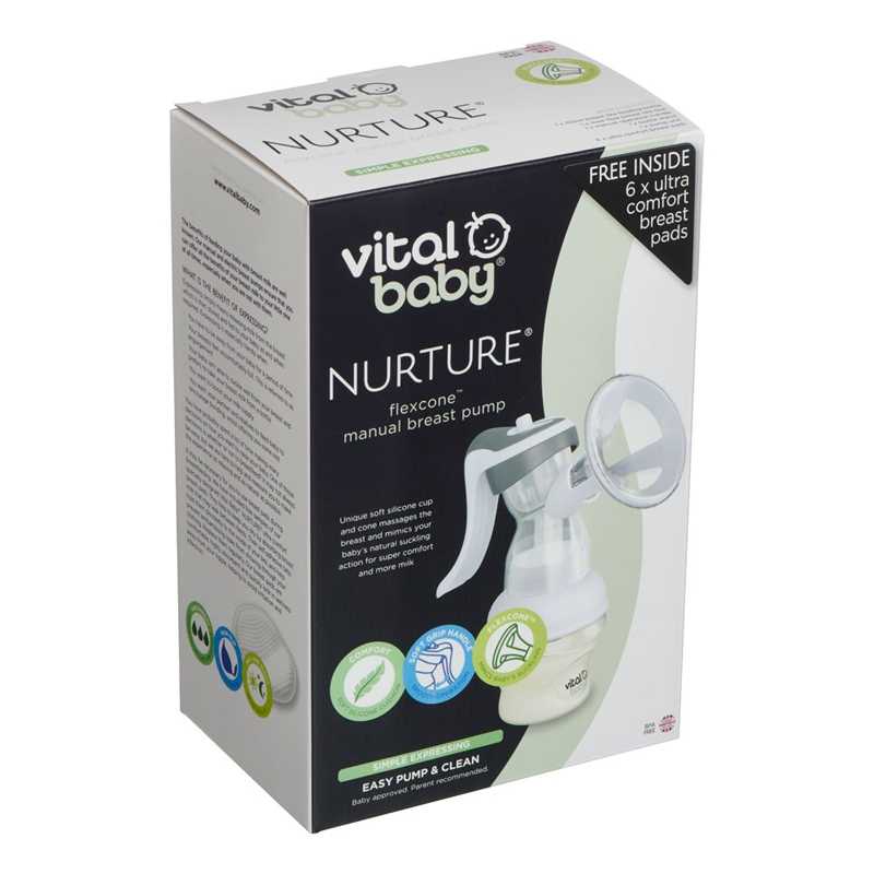 Le tire-lait manuel vital baby® NURTURE ™ flexcone ™ est doté d'une cupule mammaire en silicone super doux unique et d'un flexcone ™ qui est capable de masser le sein en imitant doucement l'action de succion naturelle de votre bébé, et offre ainsi une sensation très naturelle et une expérience efficace pour maman.